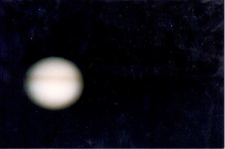 Bild 18: Jupiter Ende November 1989: nur noch ein Hauptwolkenstreifen erkennbar. Okularprojektion (9,7 SP), Kodak E 400.