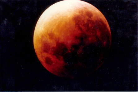 Mondfinsternis vom 09.02.1990. Brennpunktaufnahme. Aufnahmezeit: 20.45 h. Belichtungszeit: 15 s.